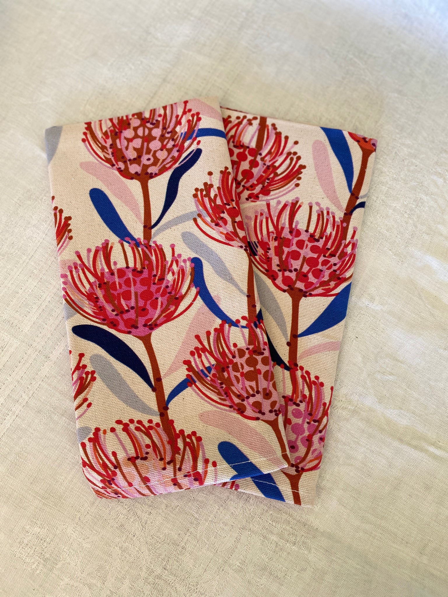 Fabulous print of Waratah in Reds Pink and Blues on a Linen Cotton blend make the most stunning napkins.